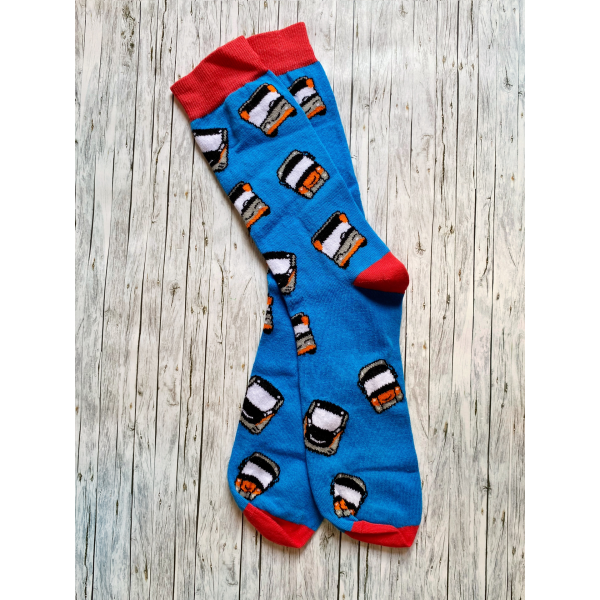 kleuren en de voertuigen die op de sokken zijn geprint.